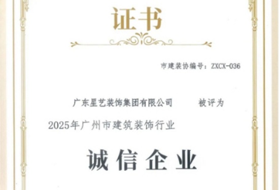 星藝裝飾榮膺“2025年廣州市建筑裝飾行業誠信企業”榮譽稱號